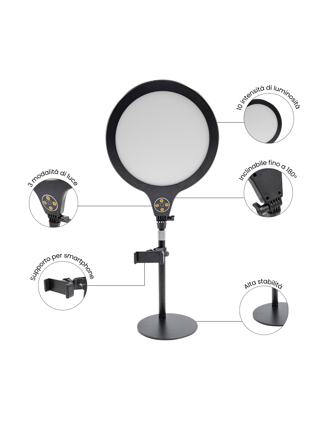 Lampada led selfie con portatelefono