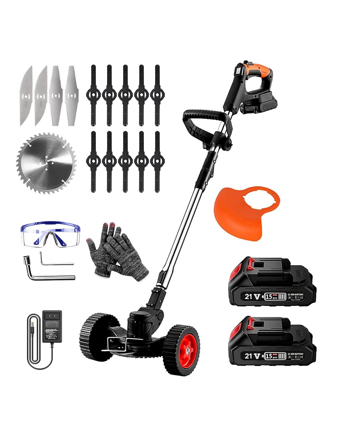 Il Decespugliatore con Ruote e Asta Telescopica Pieghevole è il tuo alleato perfetto per un giardino impeccabile. Questo versatile strumento è progettato per tagliare erba, erbacce, ortiche e cespugli con precisione, anche nei punti più difficili da raggiungere, come scarpate, sotto ostacoli e ai bordi dei prati. Grazie alle ruote rimovibili, puoi trasformare il decespugliatore in un pratico tosaerba, facilitando i lavori di potatura su superfici più ampie. La testina è regolabile tramite il pulsante laterale, ti permette di adattare l'angolo di taglio a qualsiasi esigenza, mentre l'asta telescopica allungabile consente di raggiungere i punti più alti con facilità. L'asta può essere piegata per riporla comodamente e occupare meno spazio. Il decespugliatore include due batterie al litio da 21V, assicurandoti un lavoro continuo e senza interruzioni. Viene fornito con diverse lame in acciaio, plastica e filo di nylon, adatte a qualsiasi situazione di taglio, garantendo la massima versatilità.Per la tua sicurezza, il set include anche occhiali di protezione e guanti, permettendoti di lavorare in totale tranquillità.