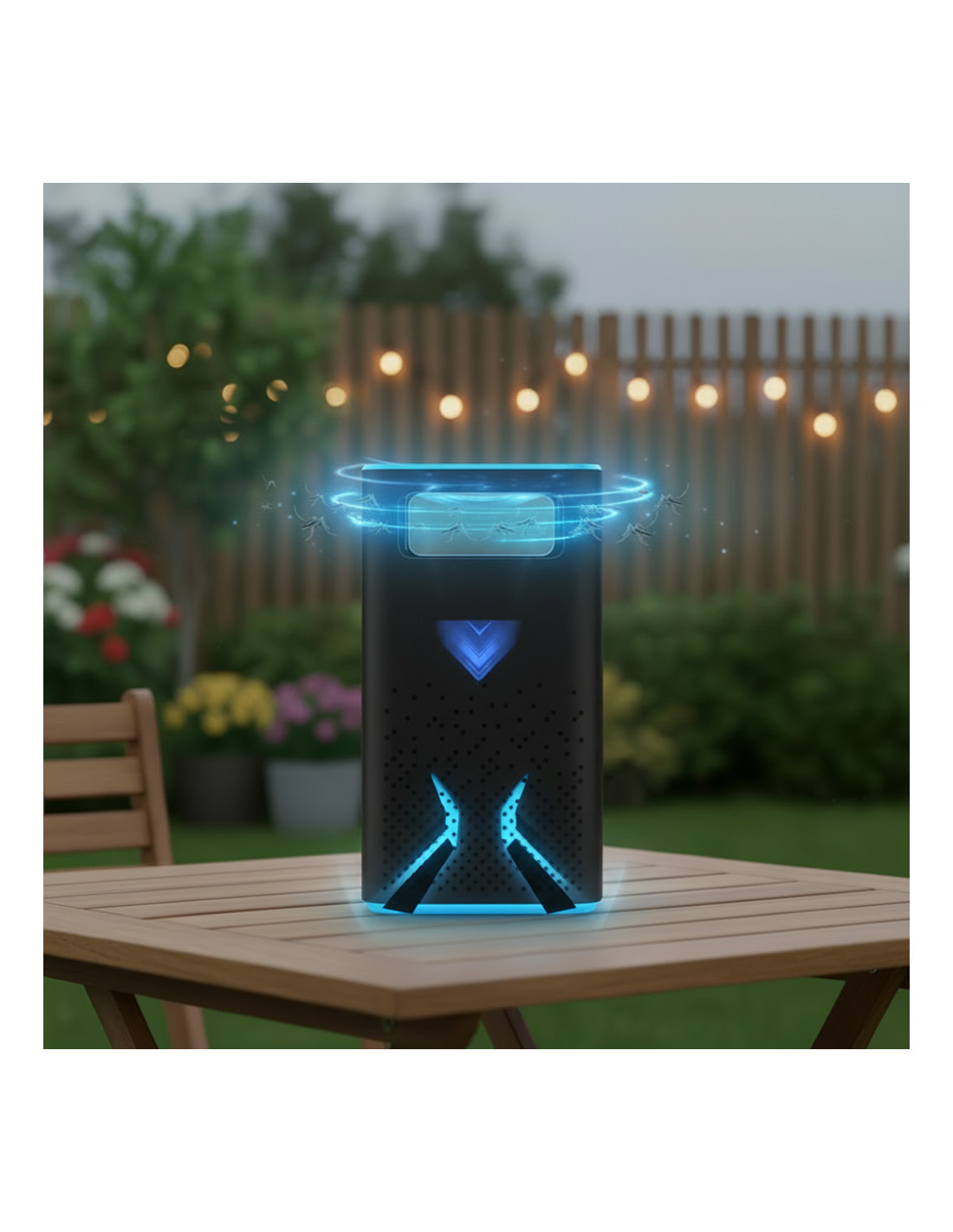 • Azione: Attrarre insetti (zanzare, mosche, ecc.) tramite luce UV e anidride carbonica (simulazione) e intrappolarli tramite forte aspirazione.
