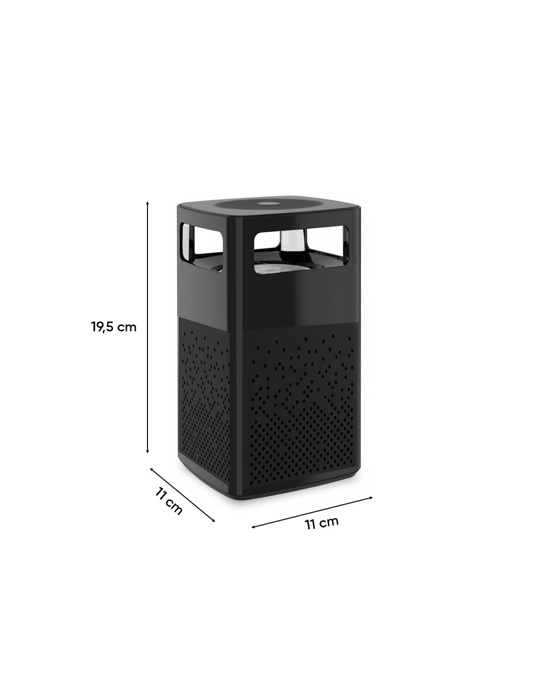 Una volta in prossimità, una ventola CC ad alta velocità genera un potente flusso d'aria che le aspira all'interno del vano di stoccaggio. Qui, gli insetti vengono intrappolati e muoiono per disidratazione, senza l'uso di sostanze chimiche, insetticidi o scosse elettriche rumorose.