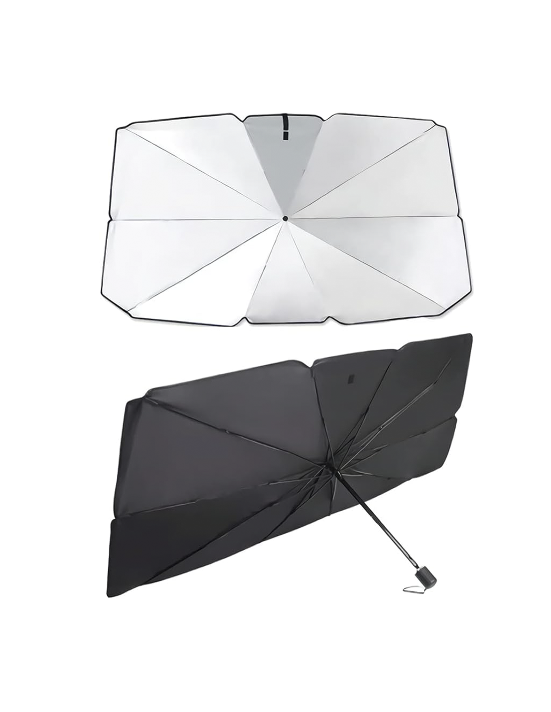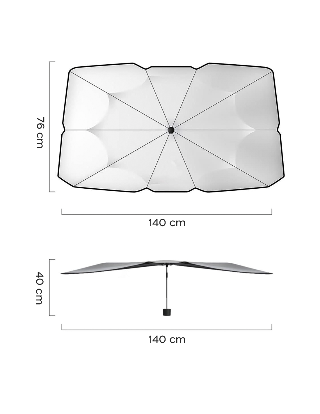 Mantieni l'Auto fresca e protetta con l' Ombrello Parasole, la soluzione ideale per mantenere il tuo veicolo fresco e confortevole anche nelle giornate più calde dell'estate. Questo innovativo parasole protegge l'interno della tua auto bloccando il calore intenso e i dannosi raggi UV, preservando così la tua auto da danni e sbiadimento. Il design intelligente del parasole lo rende estremamente facile da utilizzare: basta aprirlo ed espanderlo per adattarlo rapidamente al parabrezza della tua auto, garantendo una copertura completa. È adatto non solo per le auto standard, ma anche per SUV e camion grazie alla sua versatilità e alla sua ampia dimensione. Il sistema di chiusura semplificato ti consente di riporre il parasole con un semplice clic sul fermo di bloccaggio, riducendolo alle dimensioni compatte per un comodo stoccaggio nel cruscotto, nel pannello della portiera o sotto il sedile, senza ingombrare lo spazio.