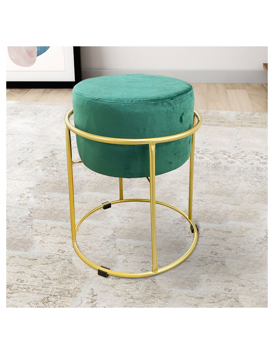 Sgabello Pouf in Morbido Velluto Design Luxury Struttura Metallo Oro 44x38