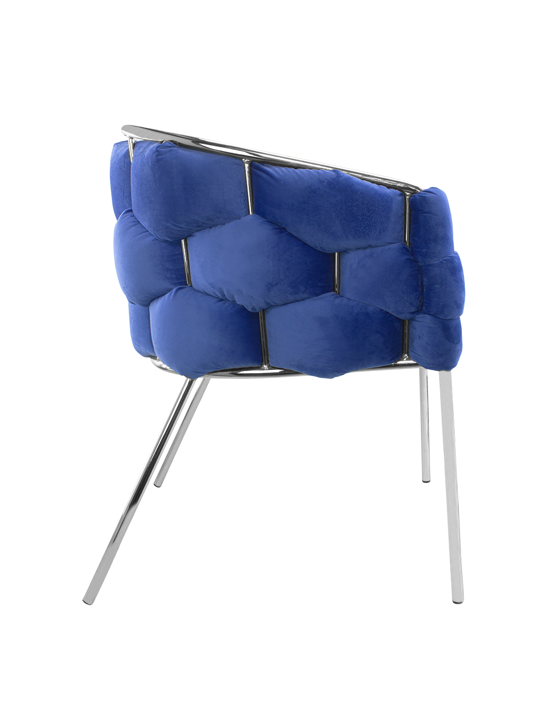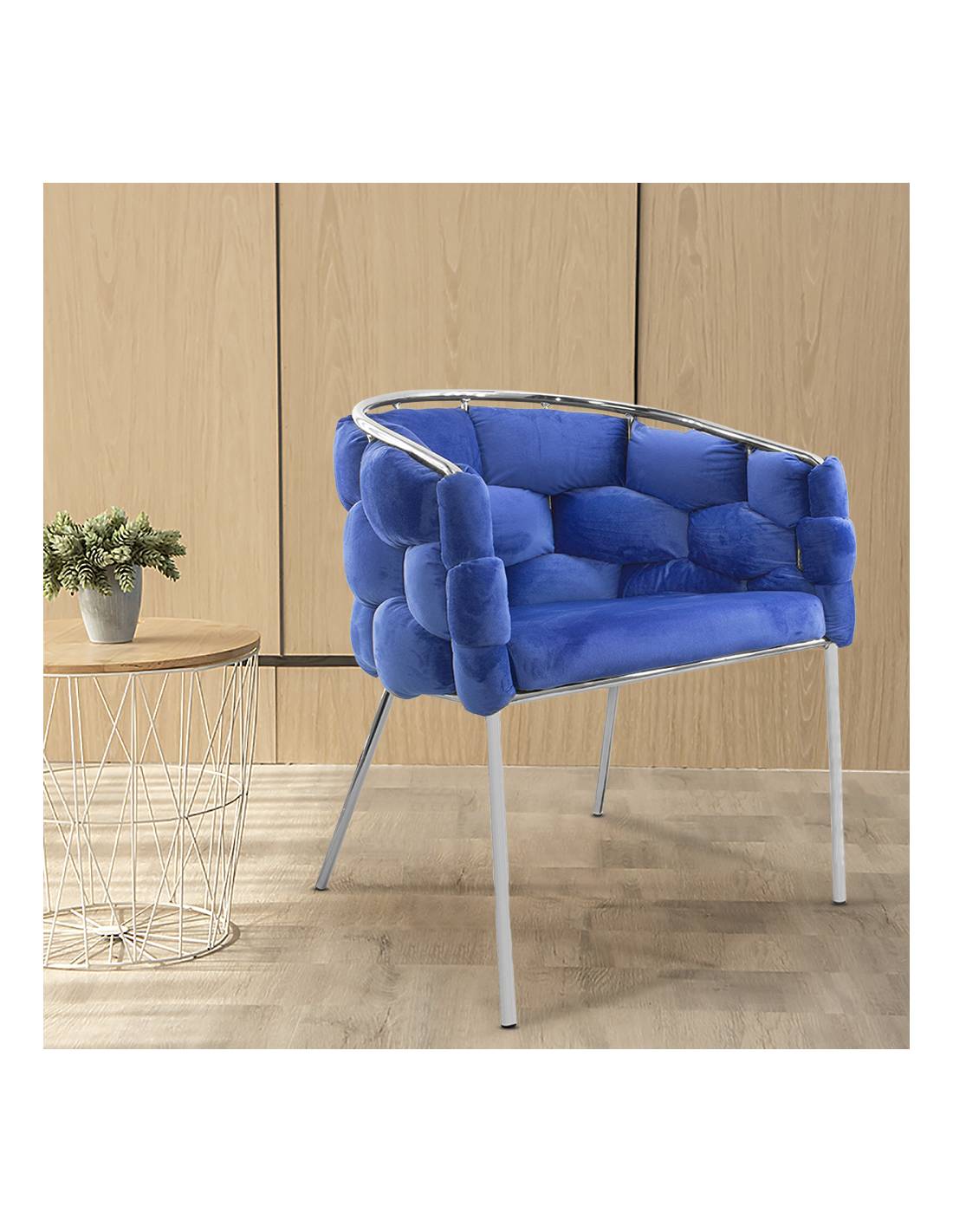 Dispone di comoda seduta con schienale ad intreccio. E' realizzata in un innovativo materiale confortevole e morbido. Design solide e resistente, grazie alla struttura in legno e gambe in ferro argentato, può supportare fino ad un peso max di 150Kg.