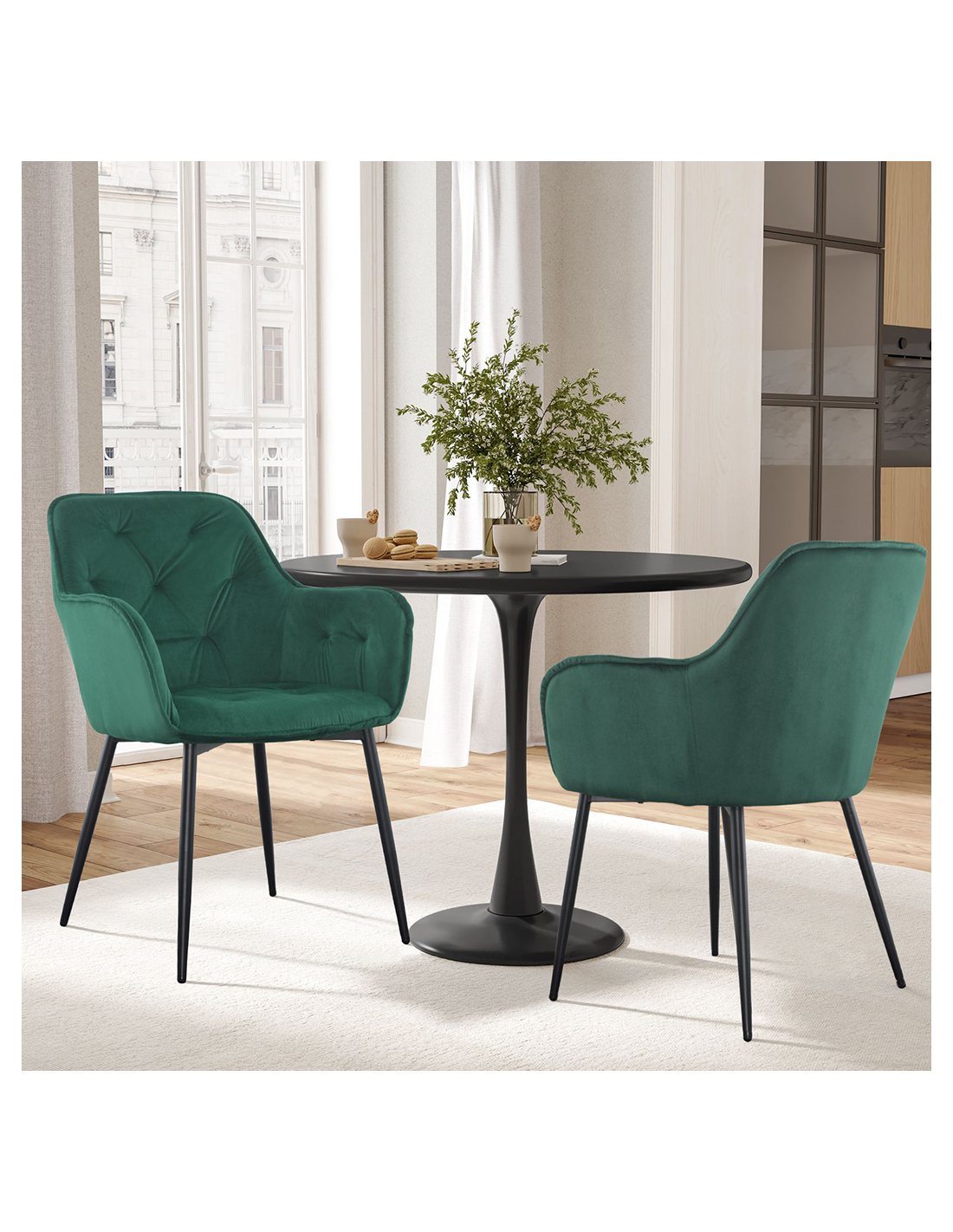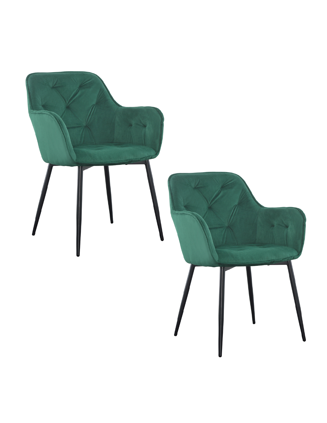 Set 2 Poltrone in Velluto QUEEN Retrò Struttura Nera con Schienale Imbottito