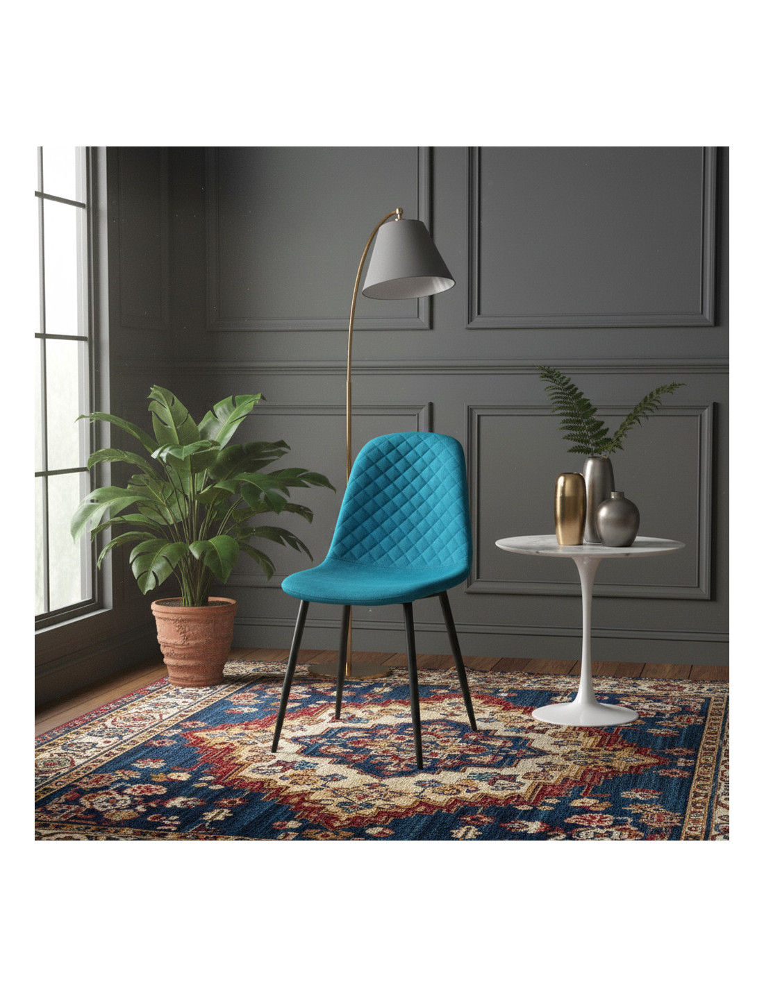 Rinnova il tuo spazio e definisci il tuo stile con il Set da 6 Sedie Nubia. Questo ensemble è l'incarnazione di un perfetto connubio tra comfort avvolgente, estetica raffinata e design moderno, ideato per chi non vuole scendere a compromessi tra funzionalità e bellezza. Ogni sedia è stata pensata non solo per offrire una seduta eccellente, ma anche per diventare un elemento di spicco nel tuo arredamento. La scelta del velluto, morbido e lussuoso al tatto, aggiunge una dimensione sensoriale unica, mentre la base in metallo nero offre un contrasto elegante e una stabilità duratura, trasformando ogni momento a tavola o di relax in un'esperienza di puro piacere. È l'opportunità per infondere nella tua casa quel tocco di calore e personalità ricercata.