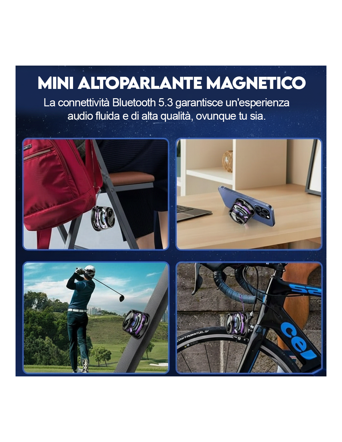 ● ATTACCO MAGNETICO INNOVATIVO: si fissa istantaneamente al tuo smartphone o a superfici metalliche, trasformandosi in un pratico supporto per guardare video o fare chiamate.