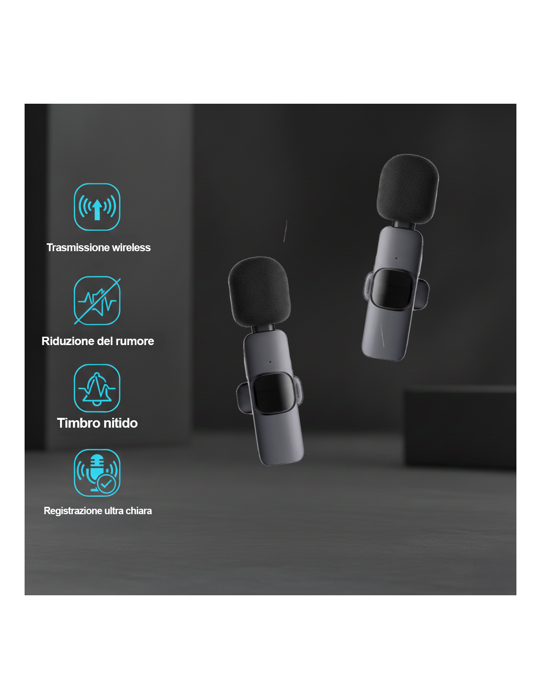 Il sistema di microfoni wireless a doppio trasmettitore è la soluzione definitiva per chi necessita di registrazioni audio impeccabili in coppia. Progettato per interviste, podcast, vlog e dirette streaming, questo set permette di catturare due voci simultaneamente con un unico ricevitore USB-C, garantendo un audio bilanciato e cristallino. Grazie alla tecnologia wireless avanzata, potrai muoverti liberamente fino a 20 metri di distanza senza temere interruzioni di segnale. Che tu sia un creator esperto o un professionista alle prime armi, la facilità d'uso e la qualità del timbro nitido trasformeranno ogni tuo contenuto video in una produzione di alto livello.