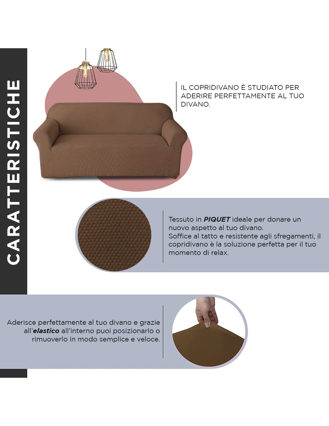 - Vestibilità Perfetta: Realizzato in tessuto piquet elasticizzato, si adatta facilmente a qualsiasi divano a 3 posti, garantendo una copertura uniforme e ordinata.