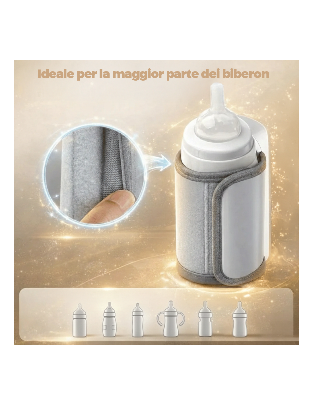 ● COMPATIBILITÀ UNIVERSALE: design flessibile e adattabile, progettato per ospitare e riscaldare biberon di diverse forme e dimensioni.