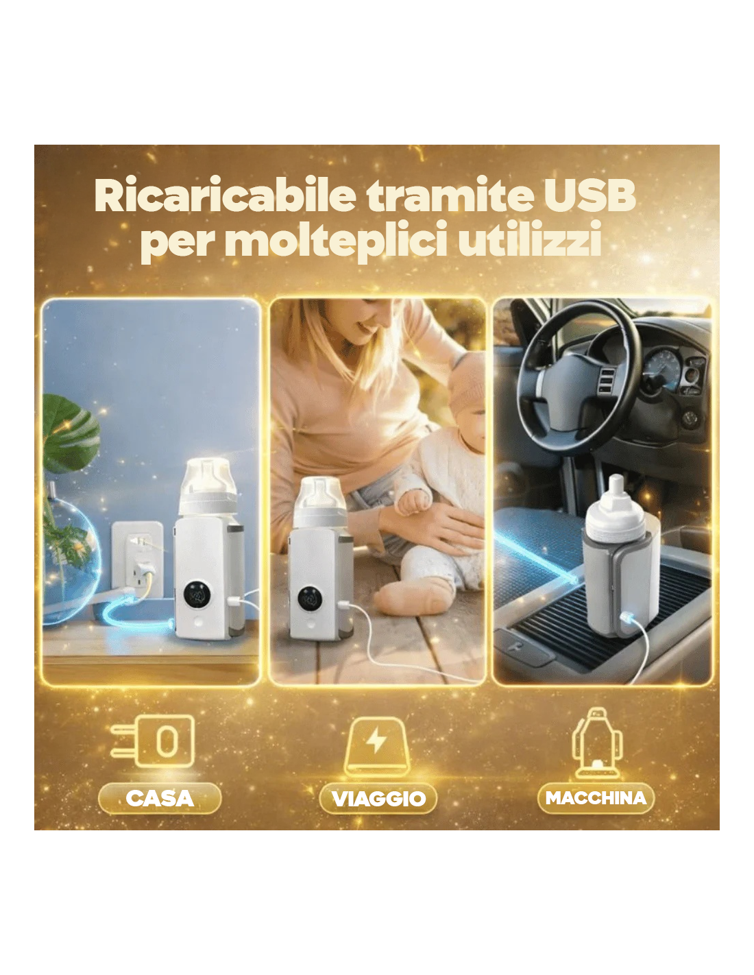 ● 1 x Riscalda Biberon Ricaricabile Portatile.
