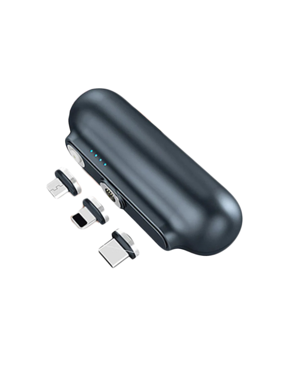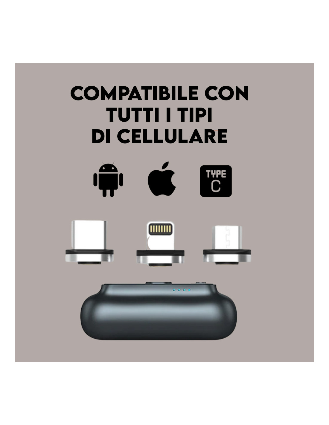 Compatto ma potentissimo, questo caricatore portatile magnetico 3 in 1 è la soluzione perfetta per ricaricare i tuoi dispositivi ovunque ti trovi. Grazie alla forte attrazione magnetica e alla ricarica wireless senza cavi, potrai dire addio ai caricabatterie ingombranti. Sicuro, leggero e compatibile con tutti i dispositivi grazie ai connettori intercambiabili (iPhone, USB-C, Micro USB), è il must-have per chi desidera viaggiare smart. Con una capacità di 5000mAh e un peso di soli 140g, si infila comodamente in tasca o in borsa, garantendo energia extra sempre a portata di mano. Il sistema di ricarica è stabile e antiscivolo, monitorabile attraverso l'indicatore LED a 4 livelli che mostra lo stato residuo della batteria. Certificato e sicuro, protegge i tuoi dispositivi durante ogni ciclo di ricarica, combinando tecnologia d'avanguardia e massima praticità quotidiana.