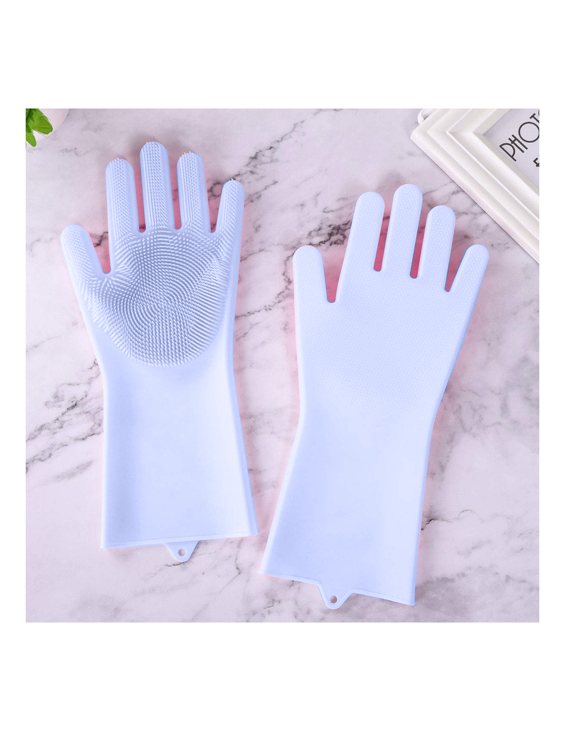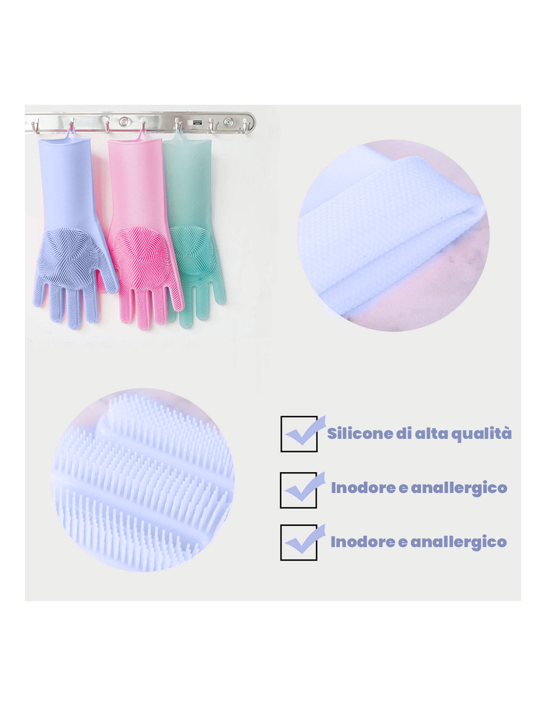La novità sta nei palmi e nelle dita delle mani che li rendono delle spugnette molto particolari, questo dettaglio è una vera innovazione e permette di lavare i piatti molto più facilmente.