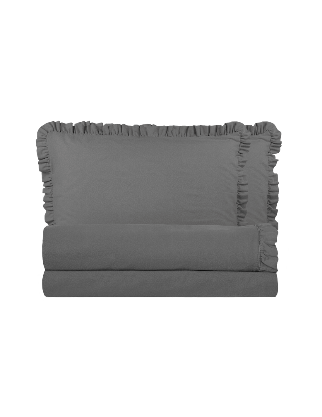 Completo per Letto Matrimoniale con Volant Due Lenzuola e Due Federe con Rouche