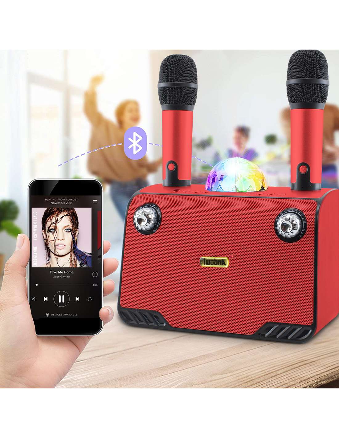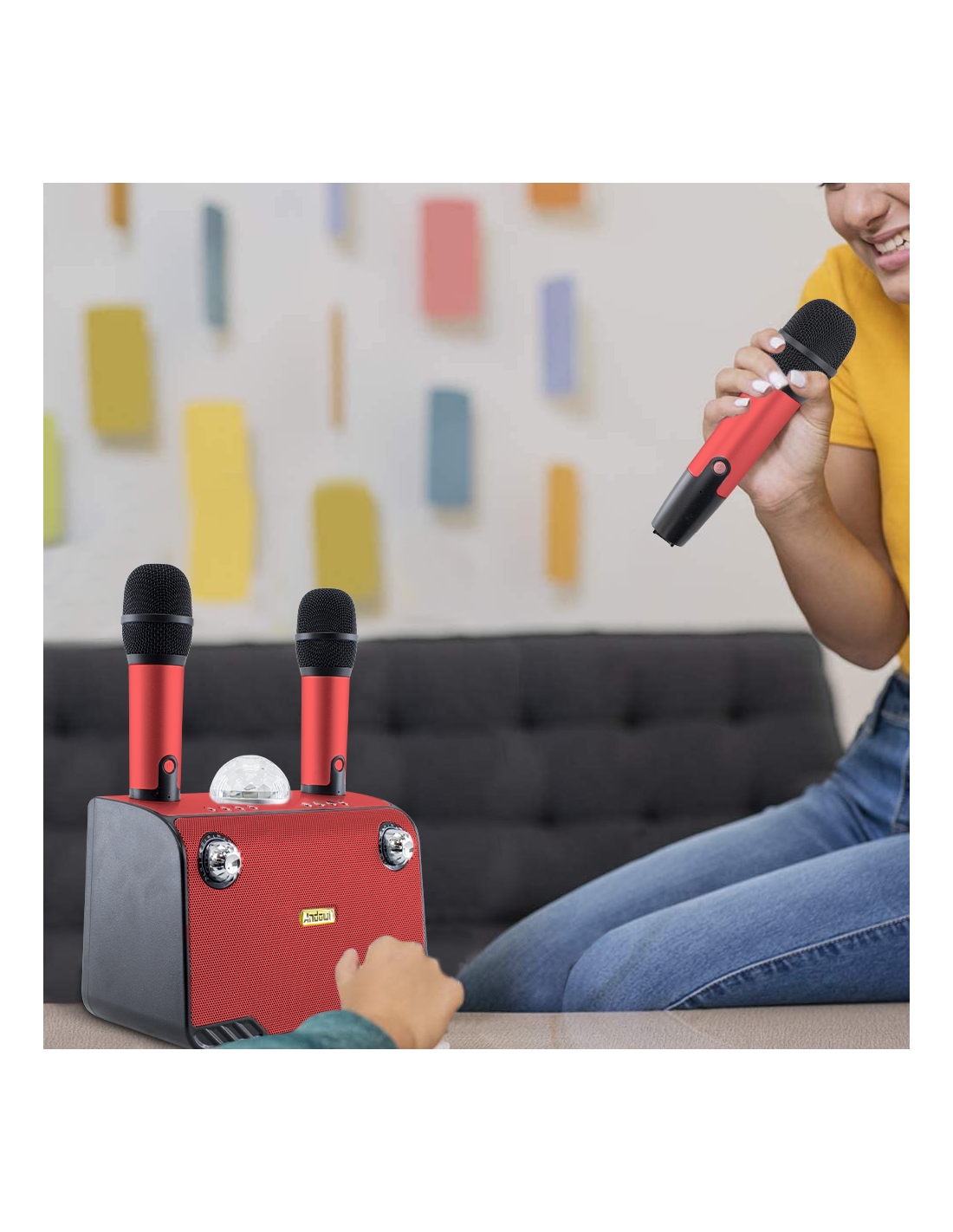 Organizza una festa con gli amici e divertiti a cantare e ballare con questo Karaoke senza fili, portalo ovunque tu voglia. Dotato di 2 microfoni senza fili ricaricabili con regolazione indipendente.