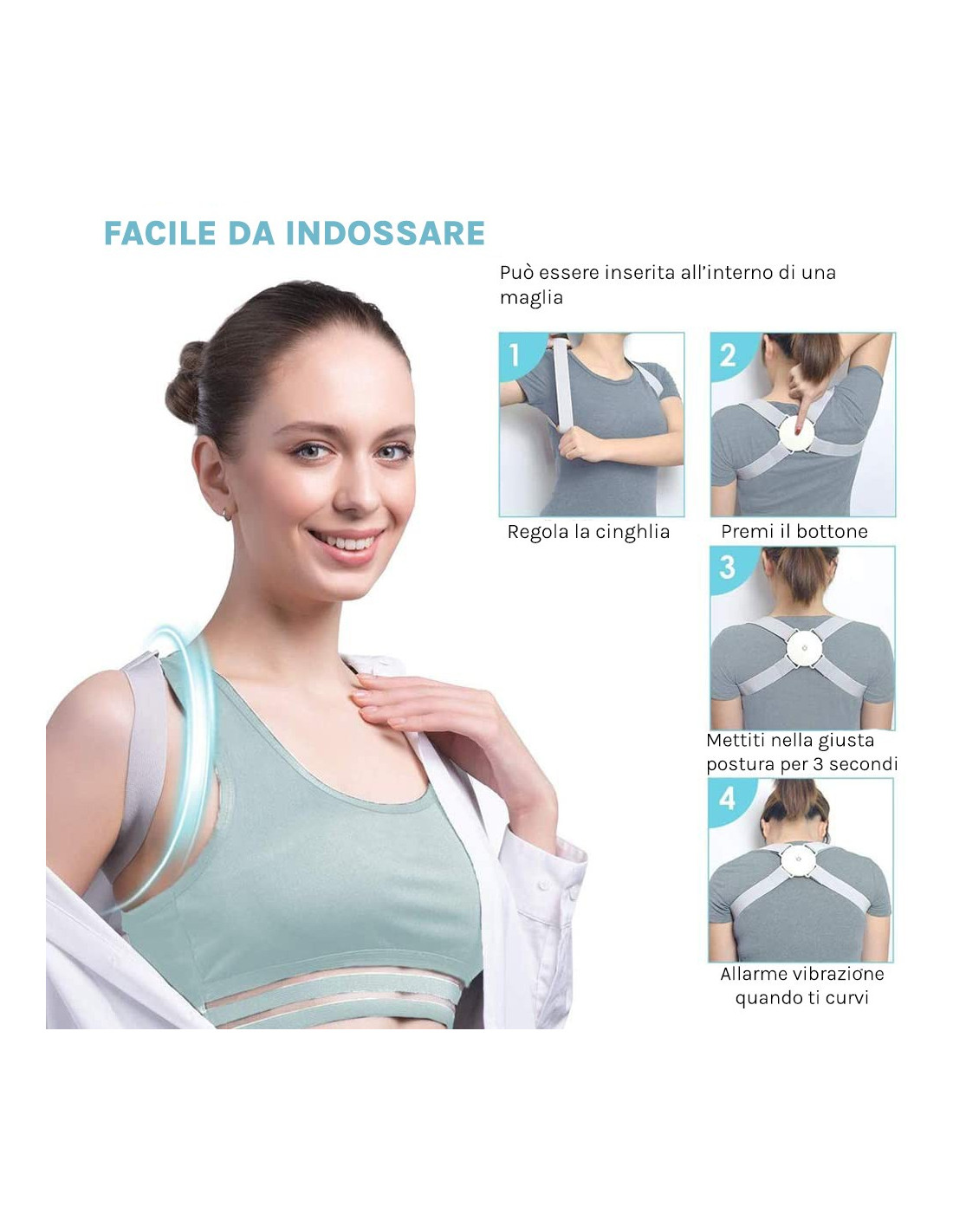 Con la tua impostazione questa fascia ti ricorda quando ti stai incurvando grazie all'apposito sensore che emetterà una leggera vibrazione ogni qualvolta tenderete ad avere una posizione scorretta. Questo perché non punta a dover essere dipendenti da quest'accessorio ma ha il fine di creare in voi l'abitudine di avere una postura eretta.