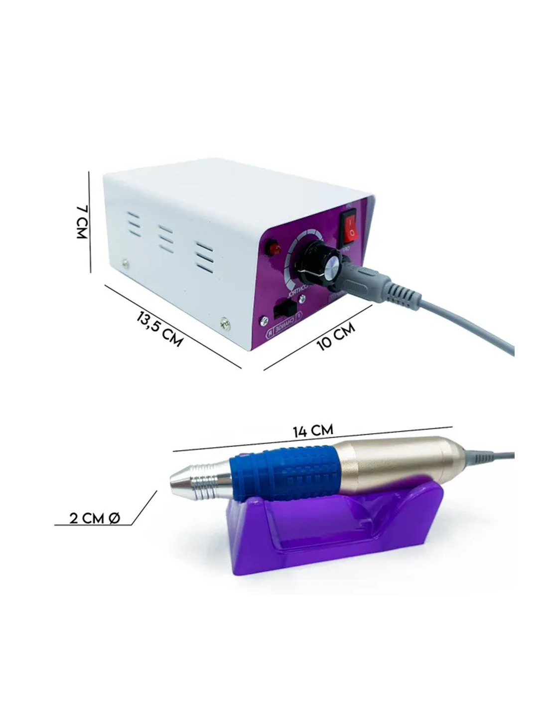 La struttura leggera ed ergonomica, rivestita con materiale antiscivolo, assicura una presa sicura e confortevole anche durante le sessioni più lunghe. Il motore silenzioso e privo di vibrazioni consente di lavorare con estrema accuratezza, migliorando la precisione su cuticole, modellatura e rifinitura.