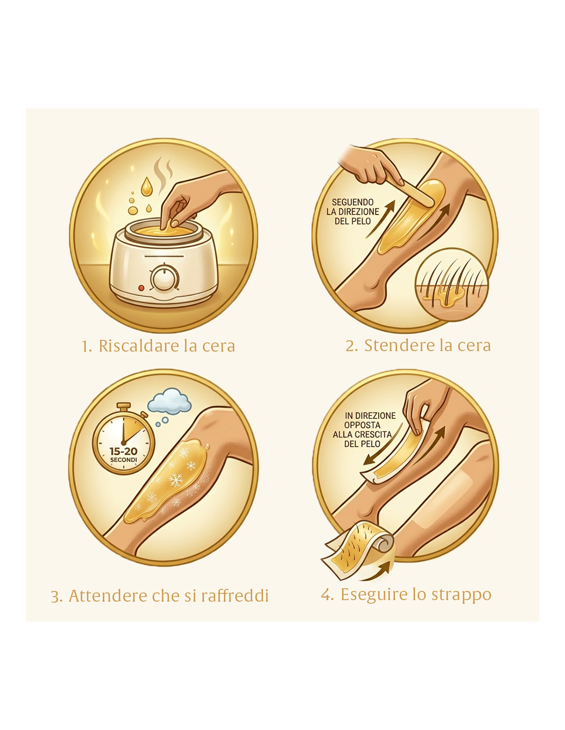 - La temperatura di utilizzo è molto più bassa rispetto alle cere tradizionali e molto vicina alla temperatura corporea. Tiepida sulla pelle (36-37 gradi)