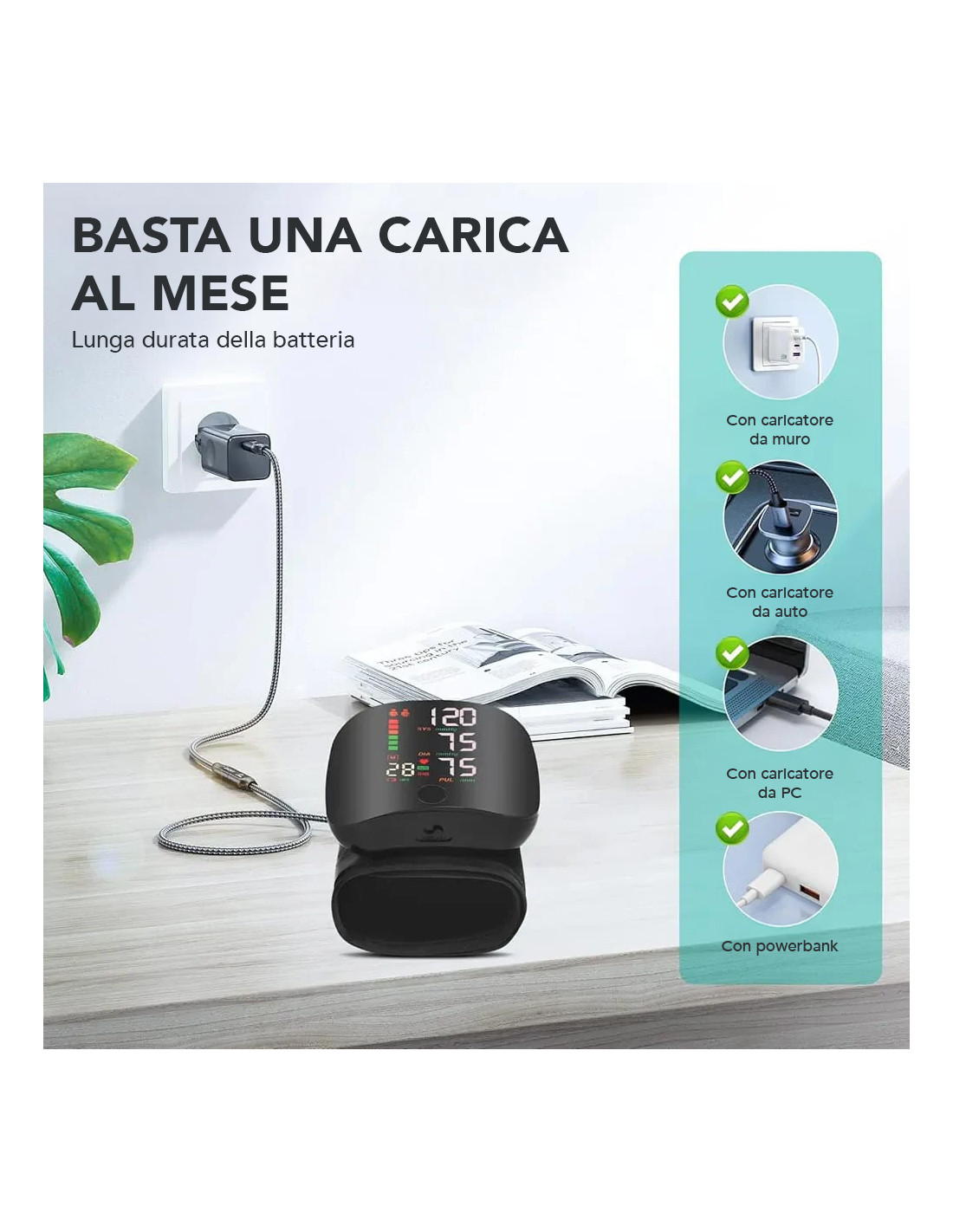 1 × sfigmomanometro da polso ricaricabile