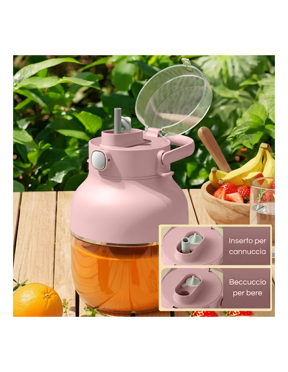 Con questo mixer frullatore portatile, avrai sempre a disposizione un modo semplice, veloce e gustoso per rinfrescarti, ovunque tu sia. Perfetto per sportivi, appassionati di alimentazione sana o per chiunque cerchi un alleato pratico e versatile nella vita di tutti i giorni.