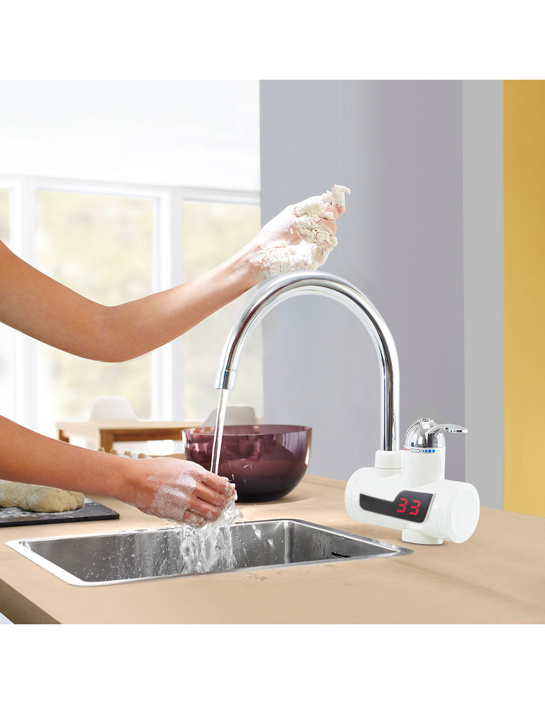 Grazie a questo rubinetto elettrico potrai avere acqua calda istantaneamente, riducendo in maniera drastica il tuo consumo di acqua e risparmierai molto tempo per ottenere la temperatura da te desiderata: ti basterà collegare questo rubinetto alla presa della corrente, attendere che la spia si accenda e aprendo l'acqua otterrai subito la l'acqua calda senza sprechi!