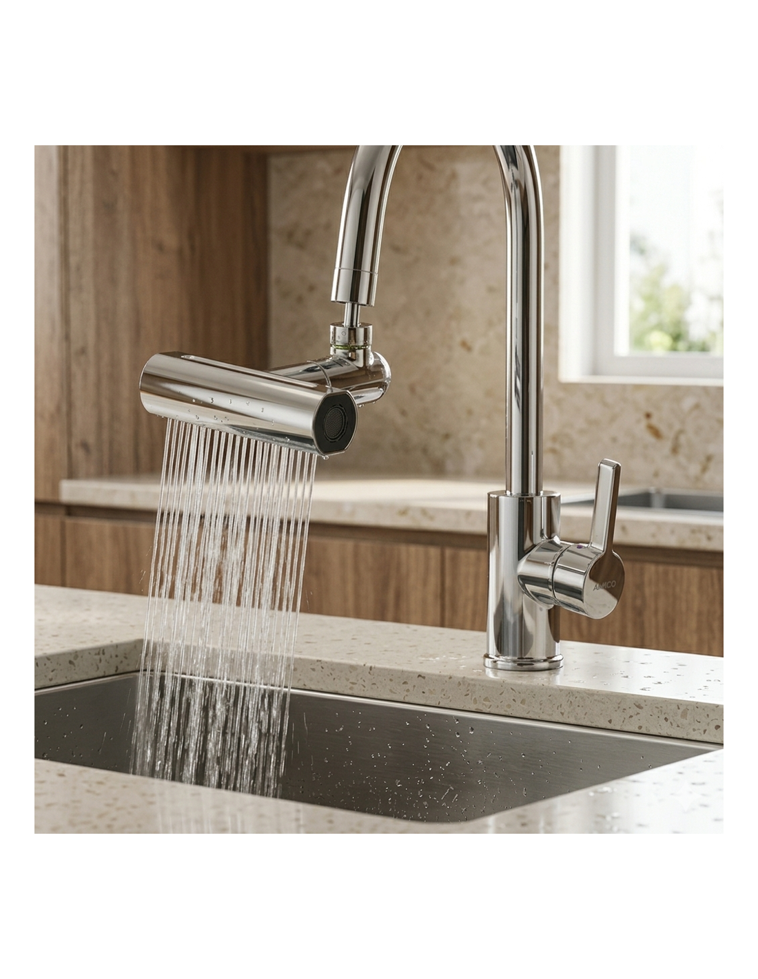 Aggiungi funzionalità e praticità al tuo lavandino o lavello con il Rubinetto Aeratore Multifunzione. Con una rotazione completa a 360° e diverse modalità di getto d'acqua tra cui: cascata, pioggia e doppio getto, offre una flessibilità senza pari. L'installazione è rapida e semplice, senza la necessità di attrezzi, e si adatta facilmente alla maggior parte dei lavandini e dei lavelli. Basta una rapida rotazione per cambiare le varie funzioni. Grazie al suo aeratore integrato, questo rubinetto impedisce gli schizzi e consente di risparmiare acqua. Realizzato con una struttura robusta in ABS e una superficie cromata, garantisce una durata nel tempo e previene la formazione di ruggine e batteri. Sia per la cucina che per il bagno, il Rubinetto Aeratore Multifunzione è la scelta ideale per un'esperienza di utilizzo conveniente e affidabile.