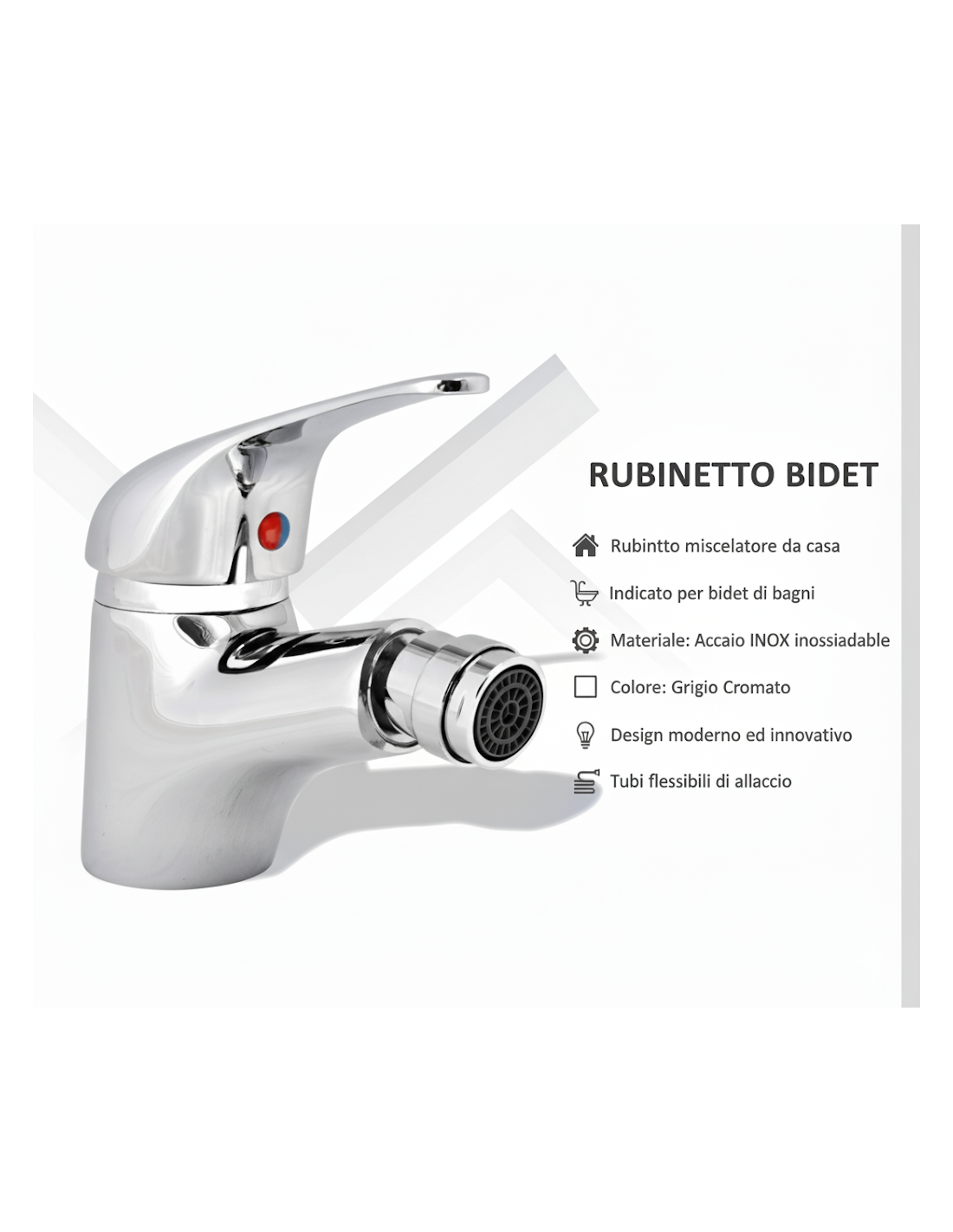 Miscelatore Rubinetto Acciao Inox Bagno Lavabo Bidet Cromato Tubi Flessibili