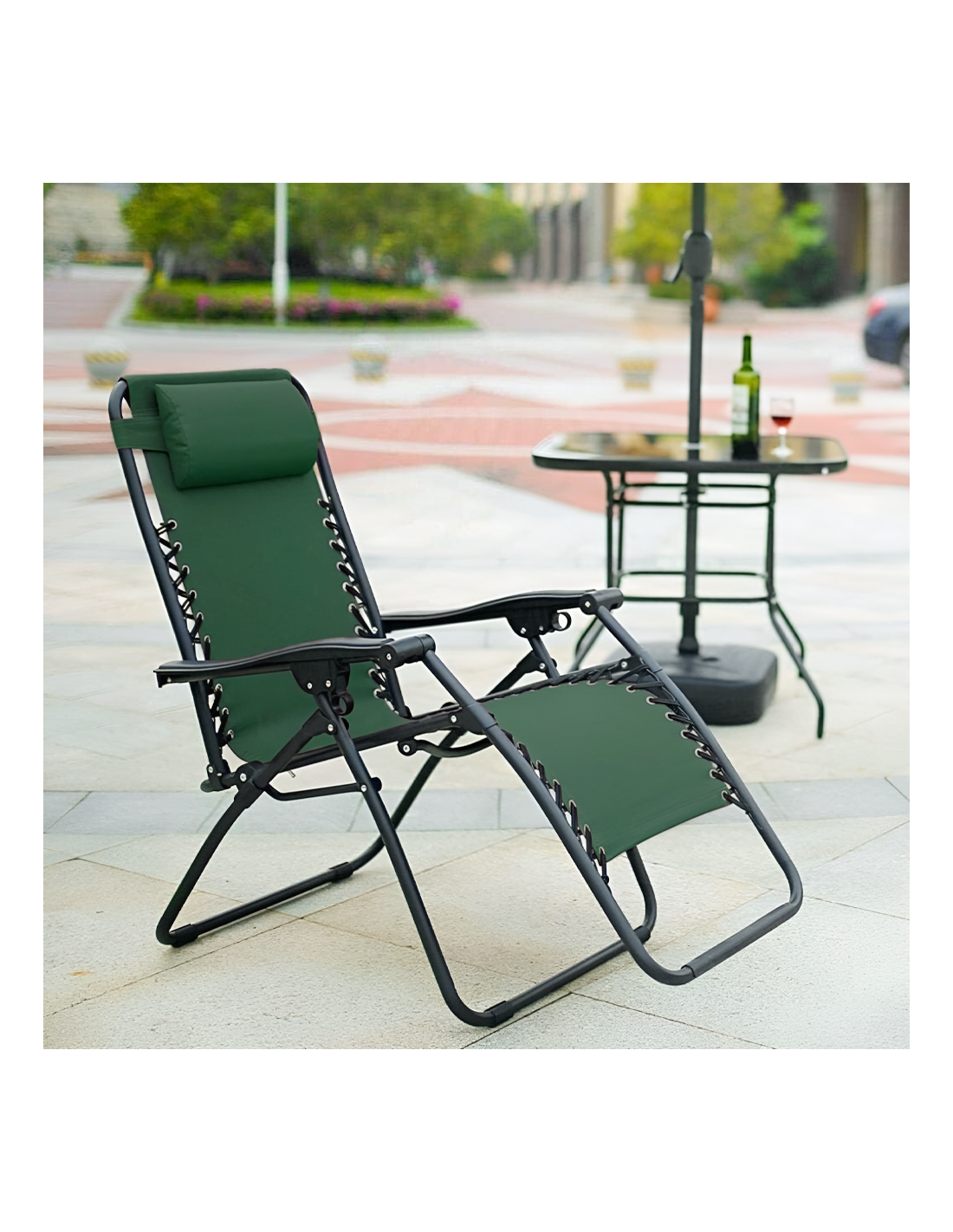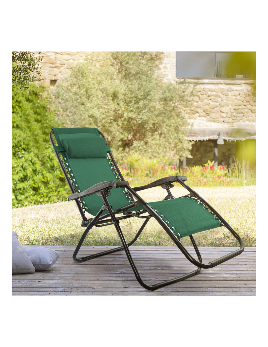 Sedia sdraio modello Gravità Zero, un must per gli arredi esterni, ideale per chiunque voglia rilassarsi all'aria aperta. La sedia è totalmente reclinabile e offre una posizione ottimale per il riposo. Con il suo innovativo meccanismo, la sedia Gravità Zero, ti permette di reclinare lo schienale e passare dalla posizione seduta a quella completamente distesa con una leggera pressione della schiena. Rimani in perfetto equilibrio nella posizione scelta. La struttura è in acciaio verniciato a polvere la rende resistente agli agenti atmosferici come l'umidità e la pioggia. Il tubo della struttura ha un diametro di 25 millimetri, mentre il tessuto in Texilene è idrorepellente, garantendo una lunga durata e facilità di pulizia. Inoltre, si richiude su se stessa occupando il minimo spazio, adatta da portare ovunque tu voglia. Dispone di un cuscino, offrendo il massimo comfort per un relax completo durante il tempo libero trascorso all'aperto. Estremamente versatile e funzionale, si adatta ad ogni ambiente grazie ai suoi bellissimi colori. La sedia sdraio è perfetta per rilassarsi all'aperto. Reclinabile, resistente e confortevole, è l'arredo esterno ideale per ogni ambiente. Approfitta del comfort e della praticità della sedia sdraio Gravità Zero per un relax totale all'aperto.