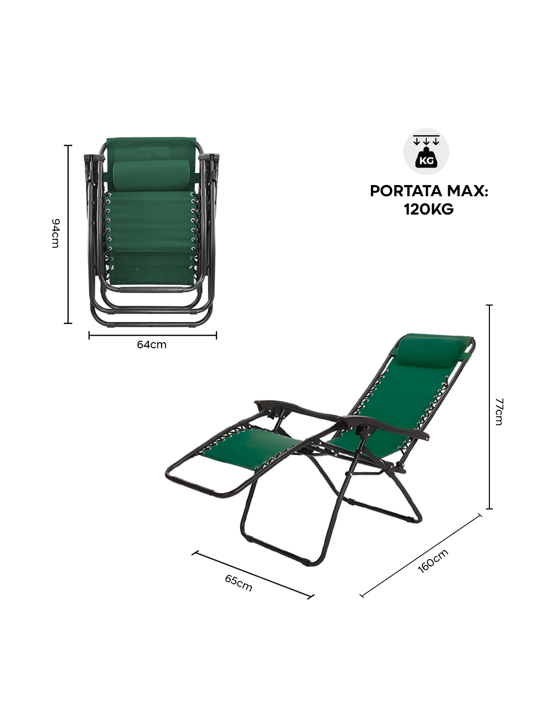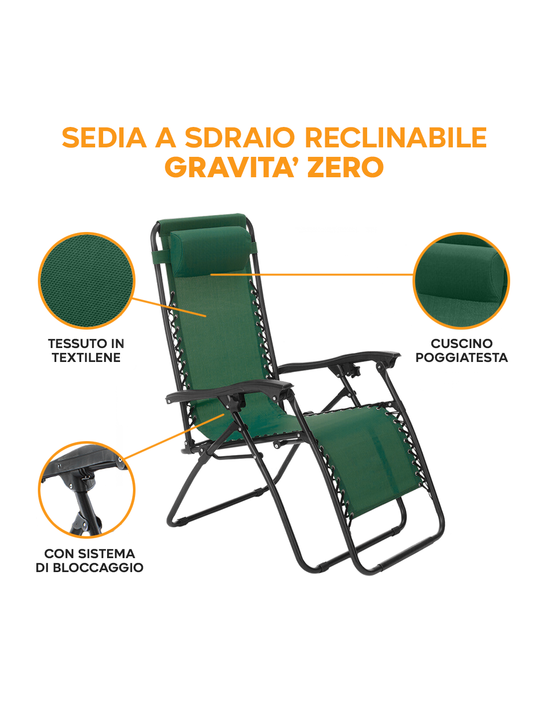 Sedia Sdraio Pieghevole Gravita' Zero Poltrona Textilene Schienale Reclinabile