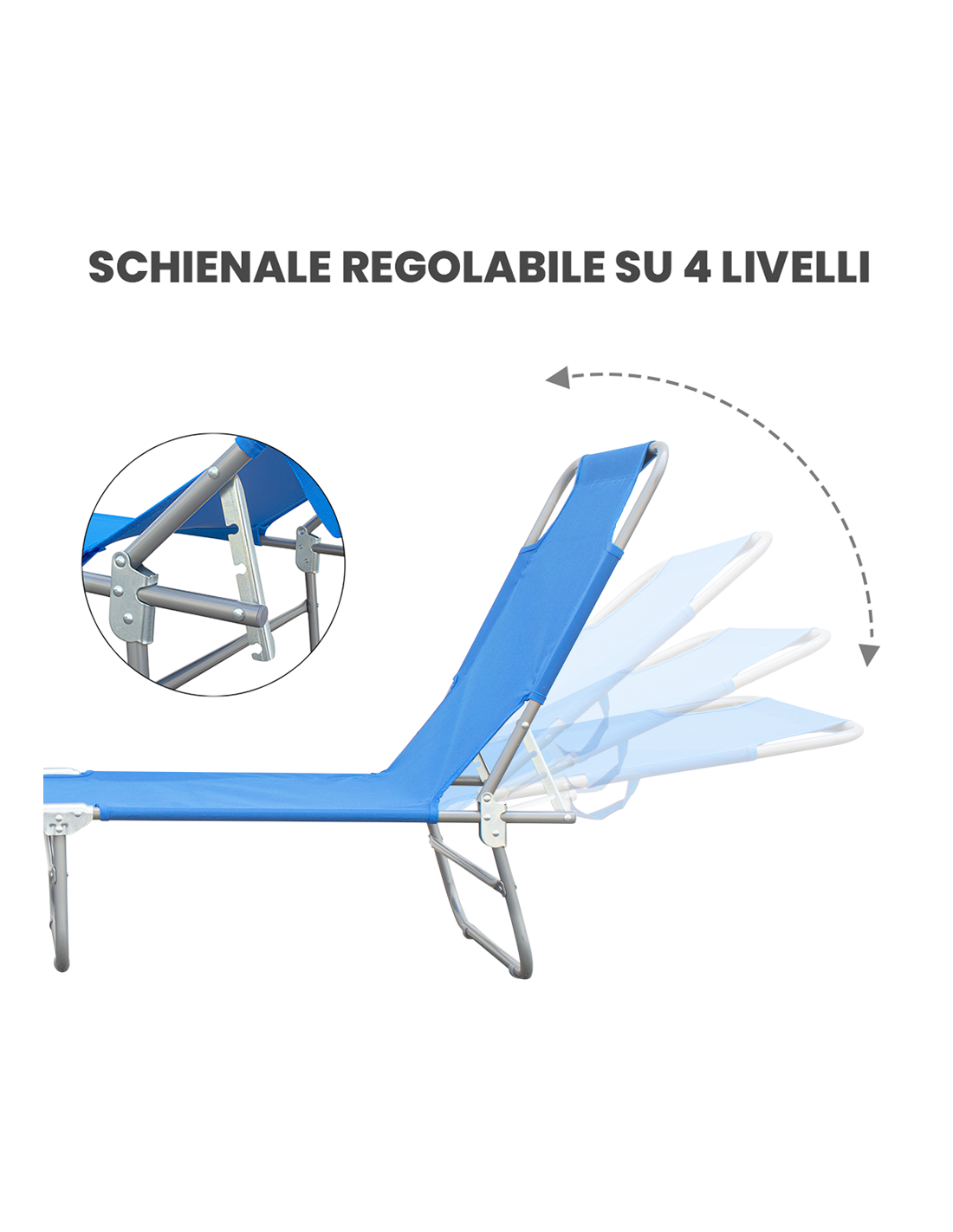 Prendi il sole in totale comfort grazie al nostro lettino prendisole modello 2309. Con uno schienale reclinabile su 4 livelli, questa struttura rigida in acciaio è estremamente robusta e può sopportare fino a 100 kg. Il telo con cuciture rifinite è super resistente e garantisce una lunga durata. Il lettino è pieghevole e si chiude su se stesso, diventando pratico e maneggevole. Puoi portarlo con te ovunque, sia che tu vada in spiaggia, in piscina o sul terrazzo di casa. Una volta chiuso, dispone di maniche in tessuto, che lo rendono facile da trasportare come una valigetta. Goditi il sole in totale relax con il nostro lettino prendisole modello 2309. Acquistalo ora e preparati a vivere un'estate indimenticabile.