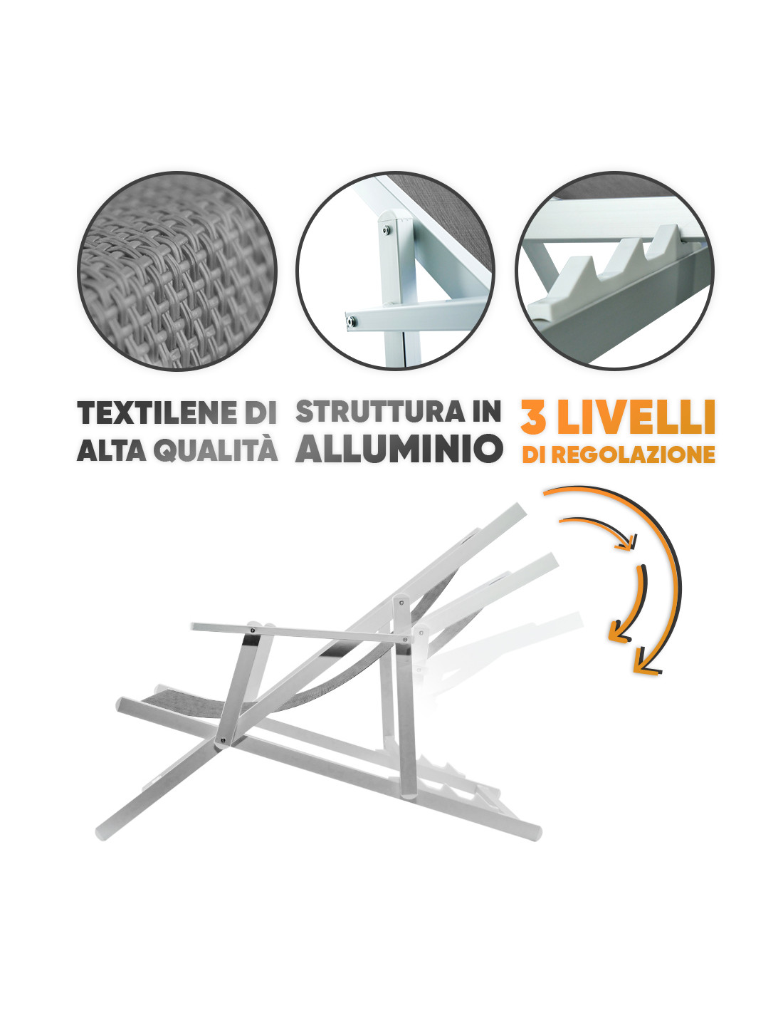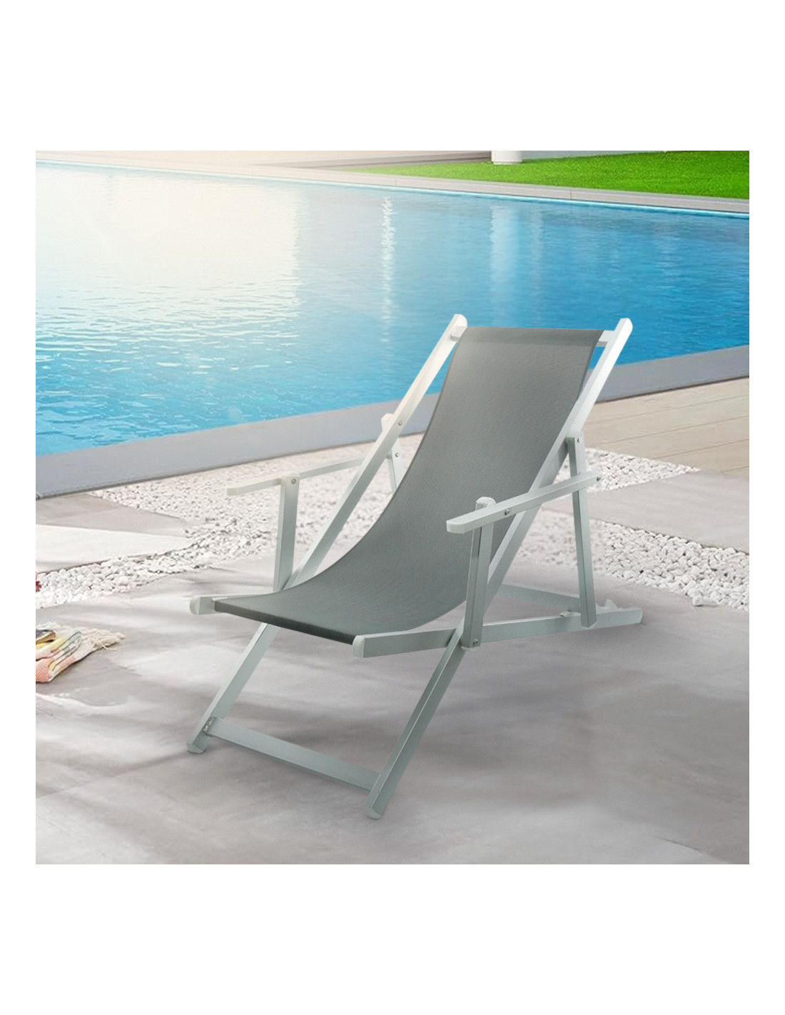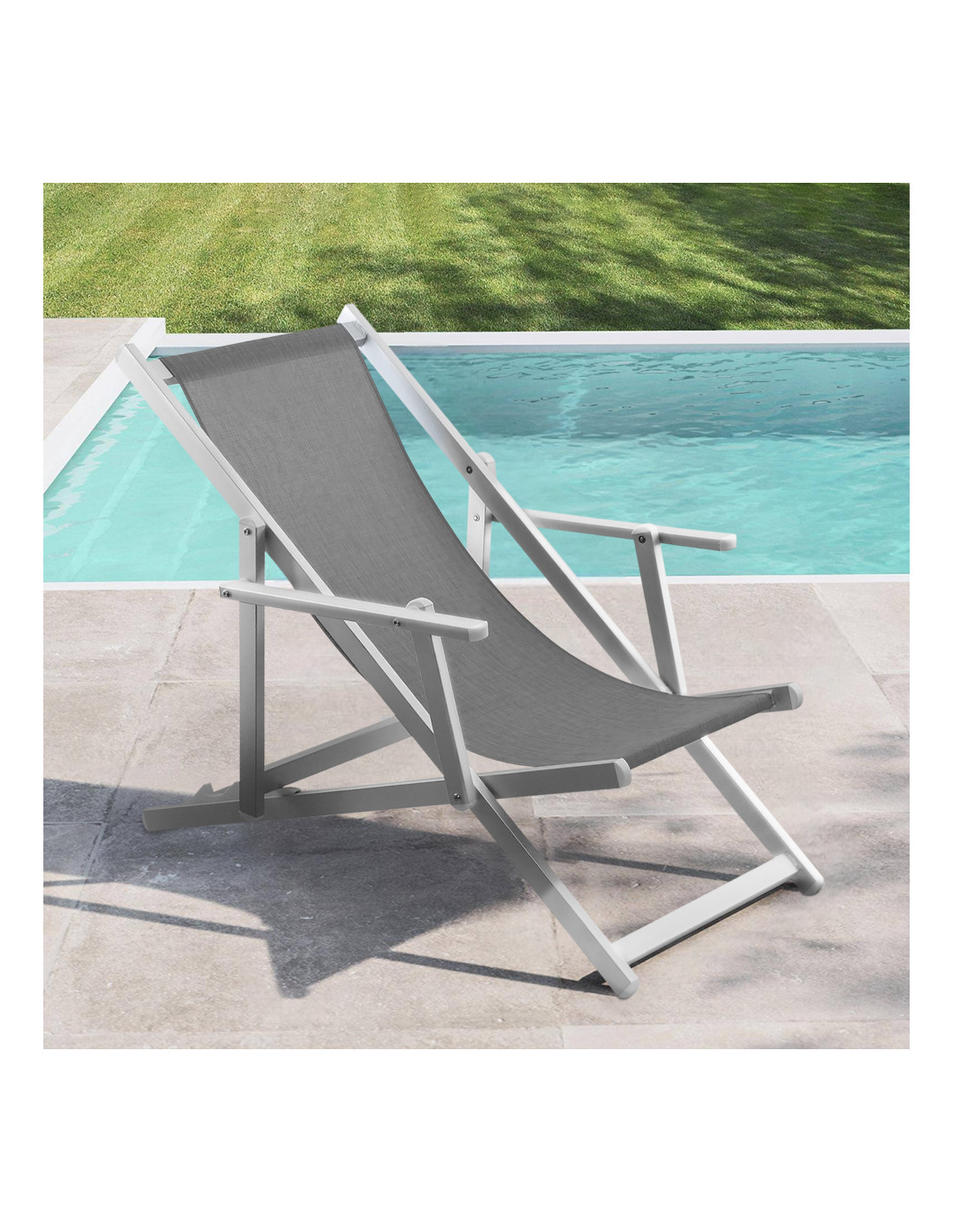 Sedia Sdraio Pieghevole Napoli con Braccioli Struttura Alluminio e Textilene