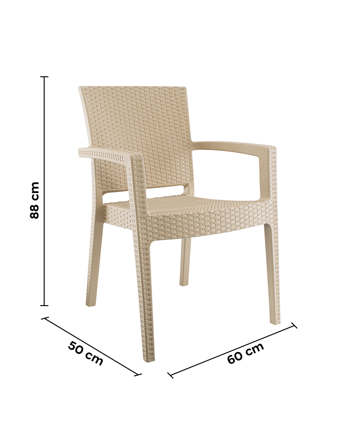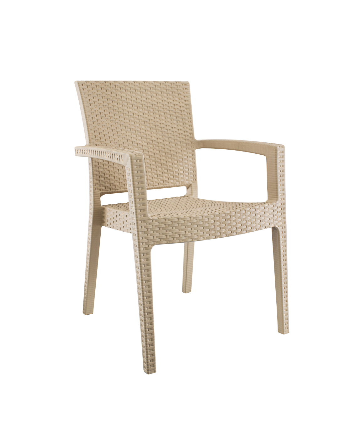 Sono realizzate in resina intrecciata con un effetto che ricorda la trama del rattan o del vimini, sono robuste e resistenti alle intemperie, capaci di sorreggere un peso fino a 150 kg.
