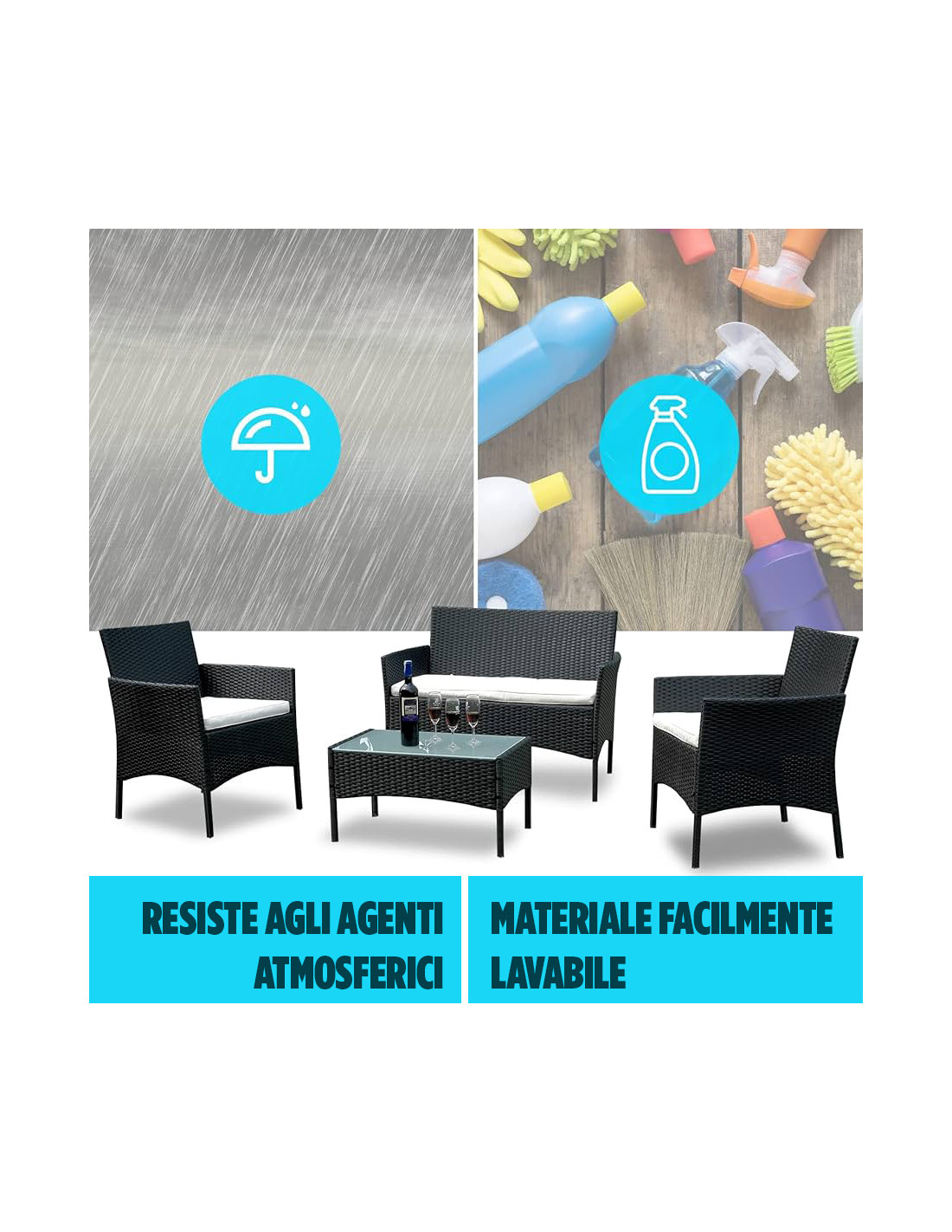 ● RESISTENZA: Materiale facilmente lavabile e resistente agli agenti atmosferici.