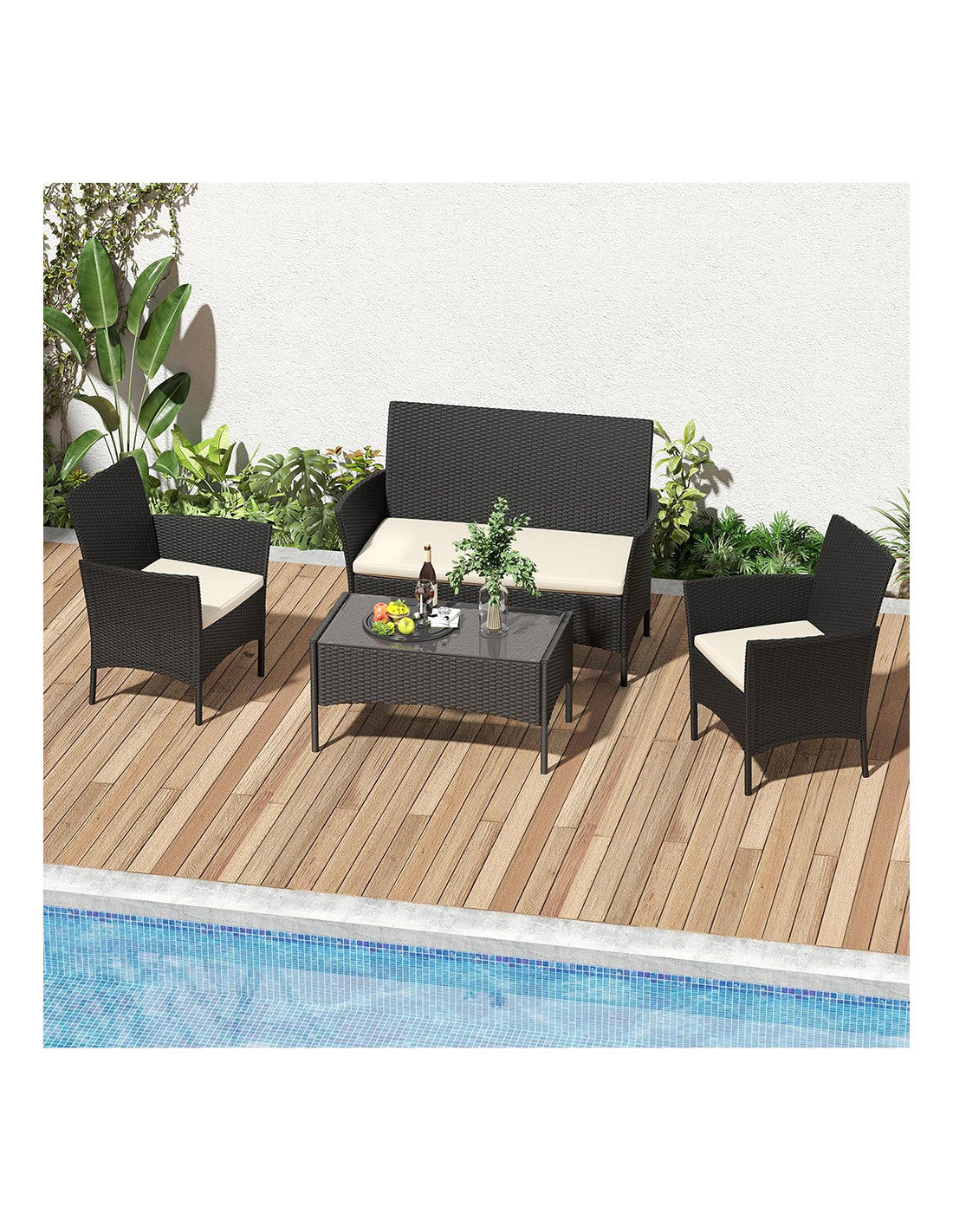 Il cuore del set è il suo design modulare e minimal, che permette di configurare le sedute in diverse disposizioni per adattarsi perfettamente a qualsiasi ambiente: dal giardino alla piscina, fino ai terrazzi più moderni. Il tavolino coordinato è dotato di un solido ripiano in vetro temperato da 5 mm, aggiungendo un tocco di sicurezza e praticità per i tuoi momenti di relax. Finalmente potrai goderti le giornate di sole con i tuoi amici in un ambiente accogliente e funzionale.