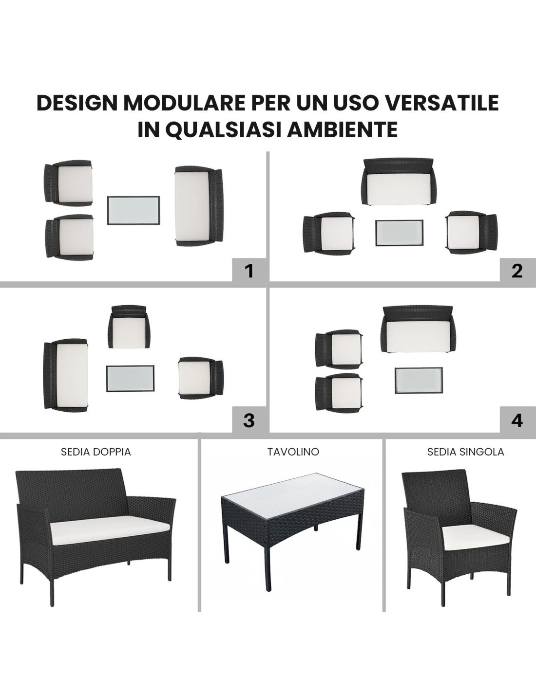● DESIGN MODERNO E MODULARE: struttura in polyrattan nero con design versatile per configurare le sedute in diversi modi.