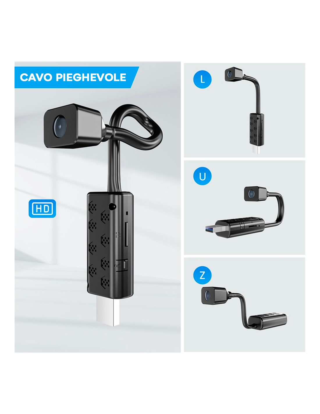Ampia capacità di archiviazione, supporta schede di memoria da 8GB a 128GB di classe 10, consentendoti di registrare video in modo continuo per lunghi periodi. Puoi archiviare facilmente i tuoi video e riprodurli quando ne hai bisogno. Un design compatto ed elegante con una dimensione ridotta di circa 16 cm, questa mini telecamera si integra perfettamente in qualsiasi ambiente senza attirare l'attenzione. Il suo design discreto ti consente di monitorare discretamente le tue aree desiderate senza compromettere l'estetica. La soluzione perfetta per la sicurezza e la sorveglianza in casa, in ufficio o in qualsiasi altro contesto.