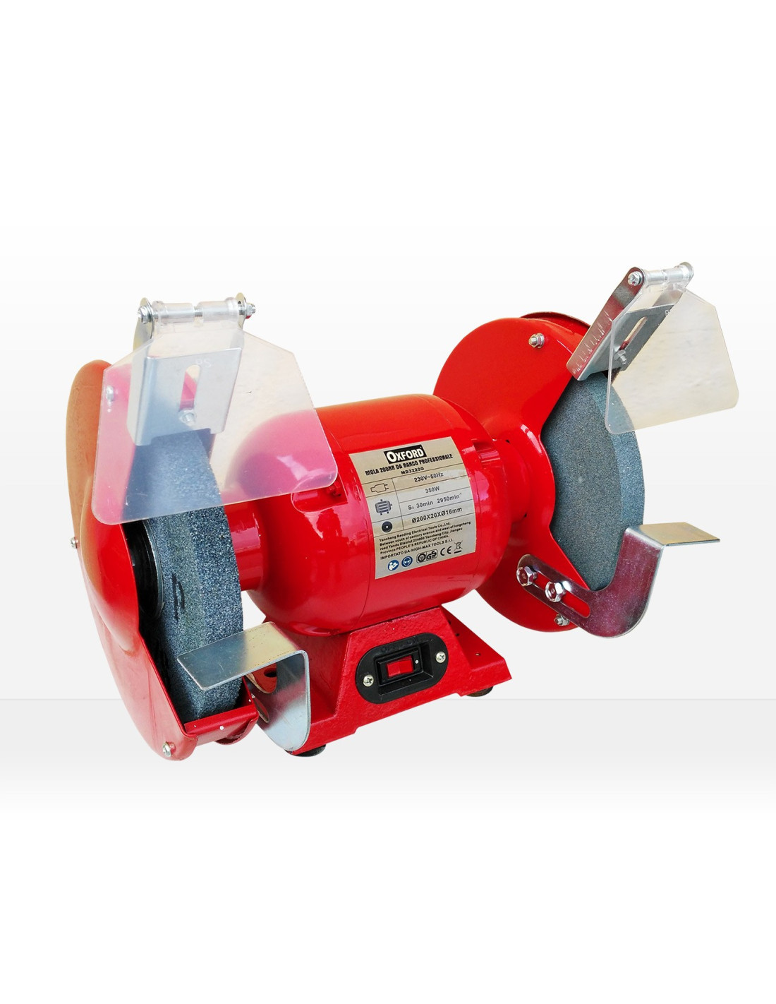 Smerigliatrice da banco mola doppio disco con 2 pietre 300 Watt 200 mm con schermo protettivo