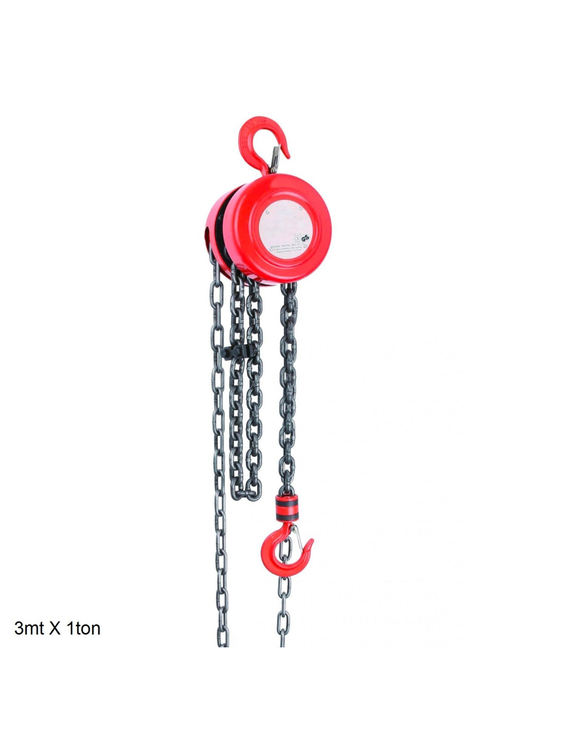 Paranco a catena manuale, con catena lunga 3 metri che sostiene fino a un peso di 1 tonnellata. Realizzato in speciale lega di alluminio, questo fantastico oggetto e' allo stesso tempo robusto e leggero. Tutti gli ingranaggi ed i ruotismi sono montati su cuscinetti a sfere e, di conseguenza, il rendimento del paranco e' molto elevato. La catena di sollevamento di questi paranchi manuali e' di acciaio speciale ad altissima resistenza. Facile da smontare e riassemblare per la sua semplice costruzione; il numero dei componenti e' infatti estremamente limitato e riunisce in se' la piu' elevata tecnologia e le migliori caratteristiche possibili per un paranco manuale.